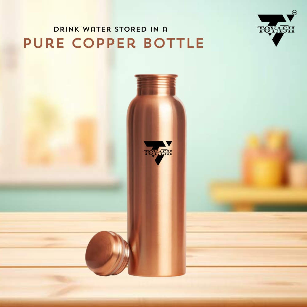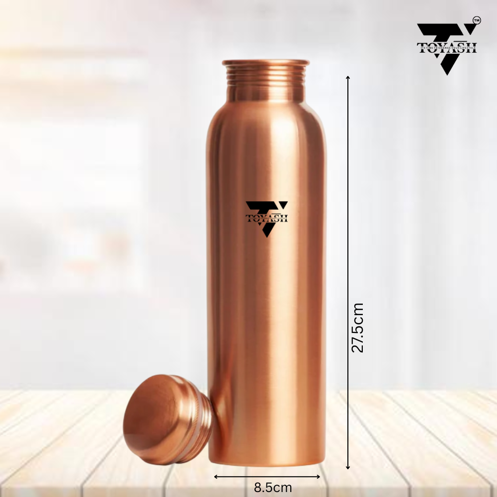 TOYASH Pure Copper Lacquer Coated Water Bottle 1 Litre | BPA Free & Non-Toxic | Leak Proof Office Bottle, Gym, Yoga, Home/Kitchen, Hiking/Trekking, Travel Bottle-PLAIN
