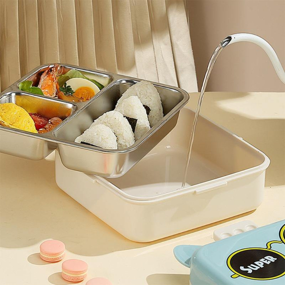 Our BPA-free lunch box features a durable outer plastic shell for added protection and portability, while the inner compartment is crafted from high-quality stainless steel, ensuring safe and healthy food storage.