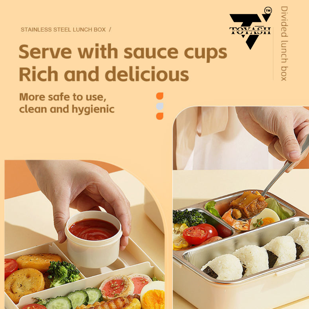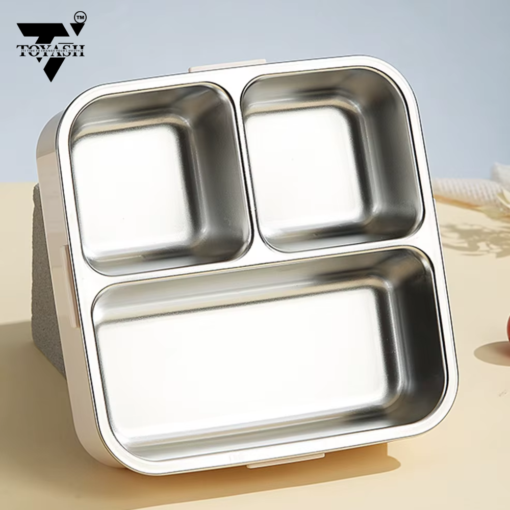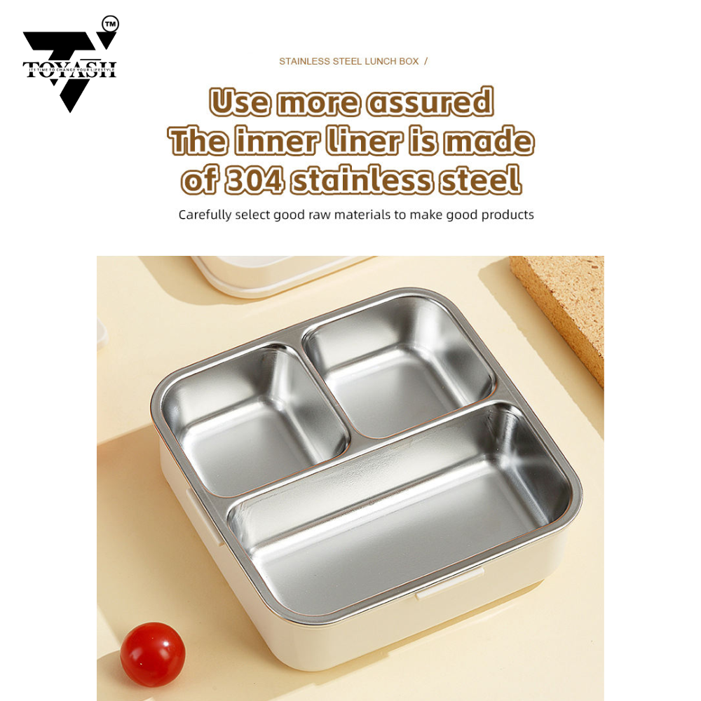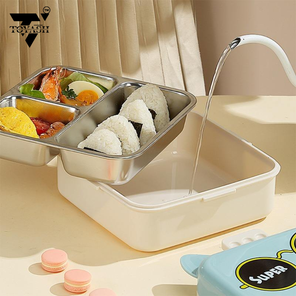 Our BPA-free lunch box features a durable outer plastic shell for added protection and portability, while the inner compartment is crafted from high-quality stainless steel, ensuring safe and healthy food storage.