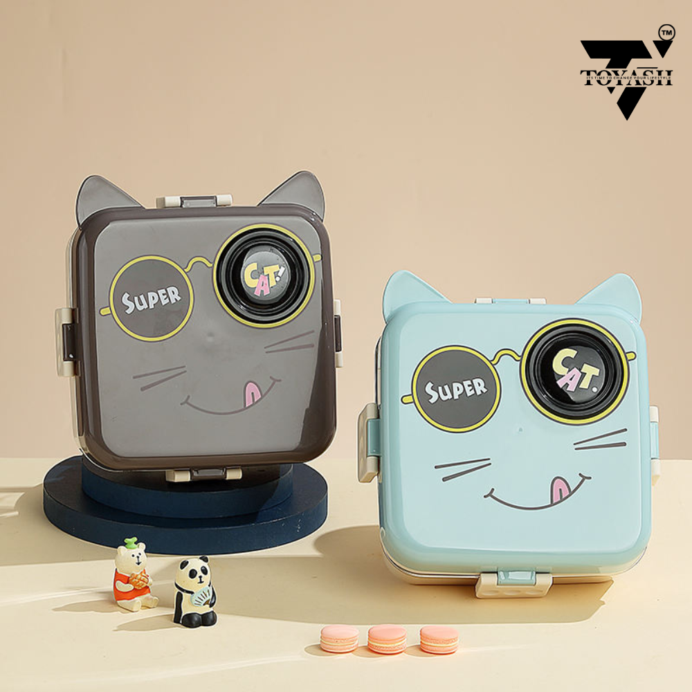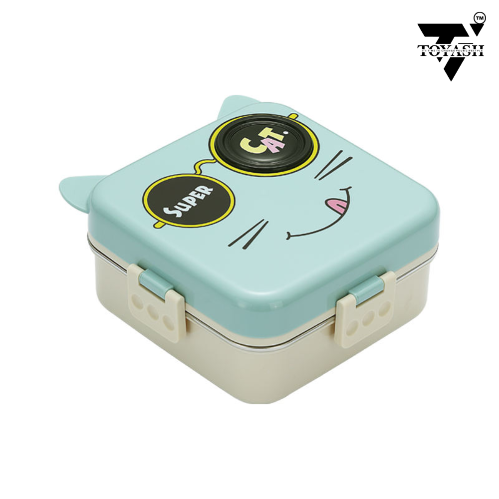 The TOYASH Super Cat Lunch Box is a vibrant and practical lunchtime companion for kids. Made from durable stainless steel, it features two layers to keep different foods separate and fresh. Complete with a detachable tray, a small container, and a spoon, it offers convenience and versatility. With a total capacity of 1120ml for the main compartment and an additional 70ml for the small container, it’s spacious enough to accommodate a variety of meals and snacks. Designed with safety in mind, it’s BPA-free, ensuring peace of mind for parents. Available in a playful green and orange color scheme, it adds fun to lunchtime while being practical and easy to clean.